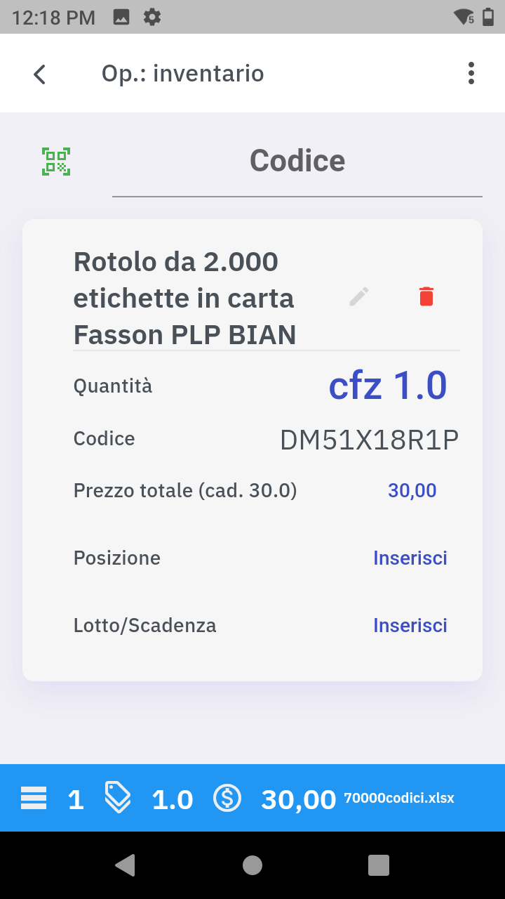 Durante la fase di lettura dei prodotti il programma rileverà automaticamente gli articoli appena scansionati presenti nel database (anagrafica prodotti) precedentemente caricato mostrando, in tempo reale, informazioni come la descrizione, il prezzo, la giacenza, la posizione di magazzino.